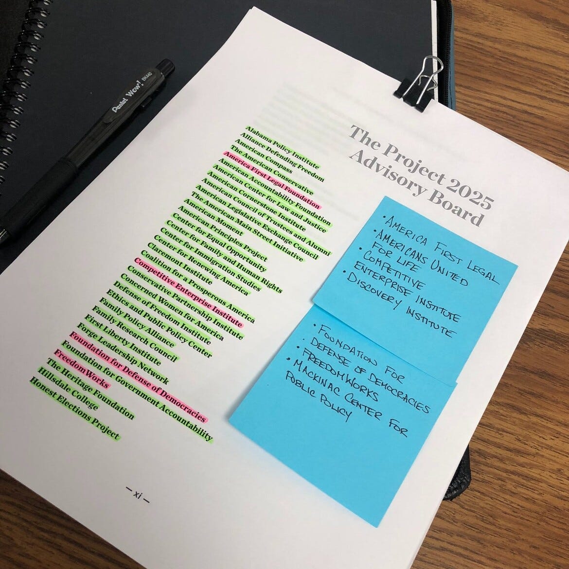 There are at least 117 organizations that are currently listed or previously listed as members of Project 2025’s Advisory Board, which includes several prominent and influential conservative groups.