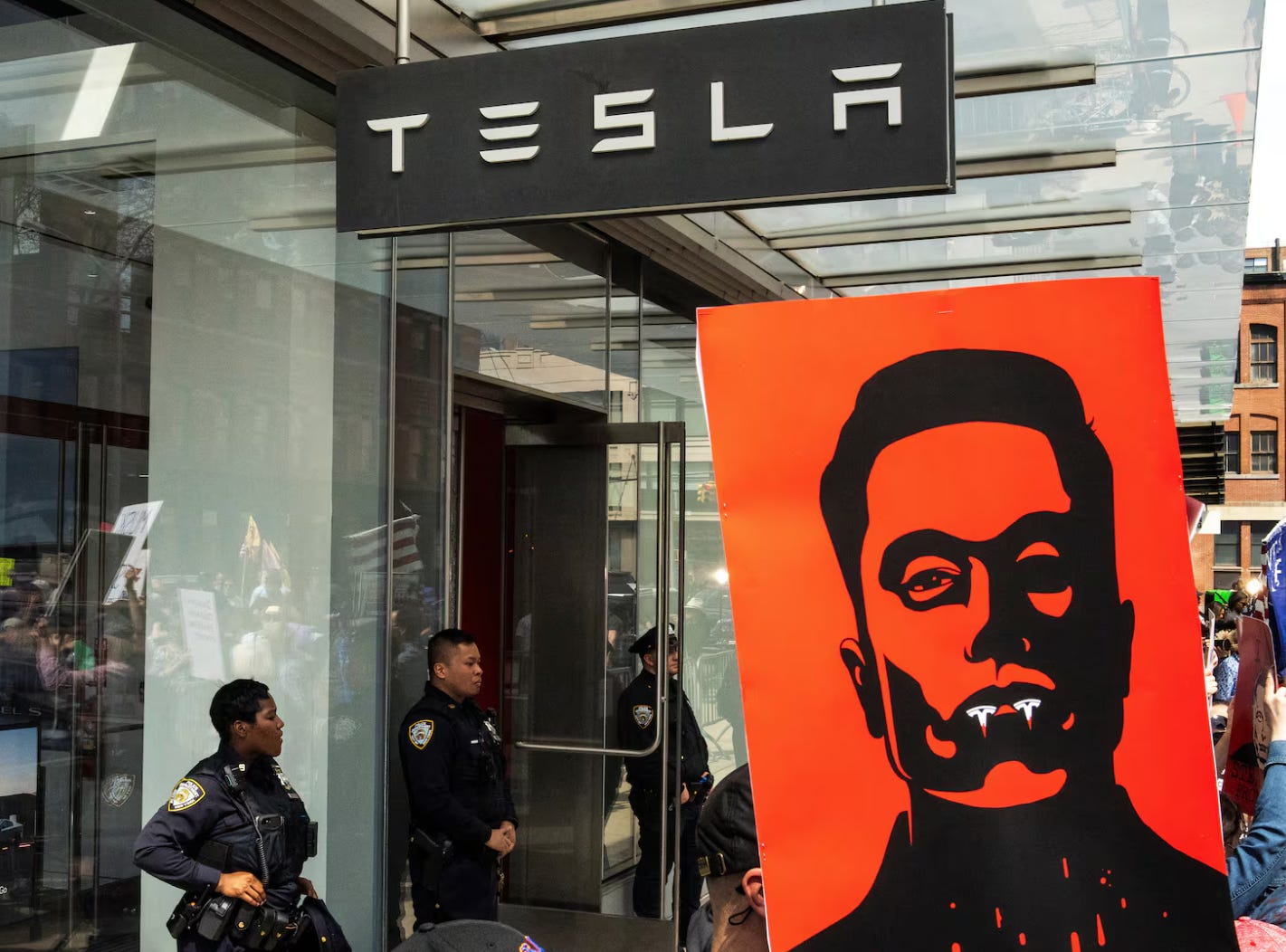 The majority of the #TeslaTakedown protests were reportedly peaceful, despite an attempt by 'small groups of neo-Nazis, Proud Boys, and Trump supporters to intimidate rally goers.'