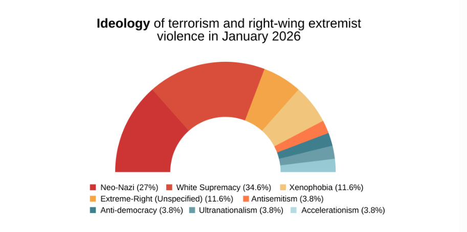 While the increase in incidents “suggests renewed operational activity at the start of the year,” the incidents apparently follow the “established pattern observed in previous months, with incidents concentrated in a limited group of countries where these ideologies maintain a sustained presence.”