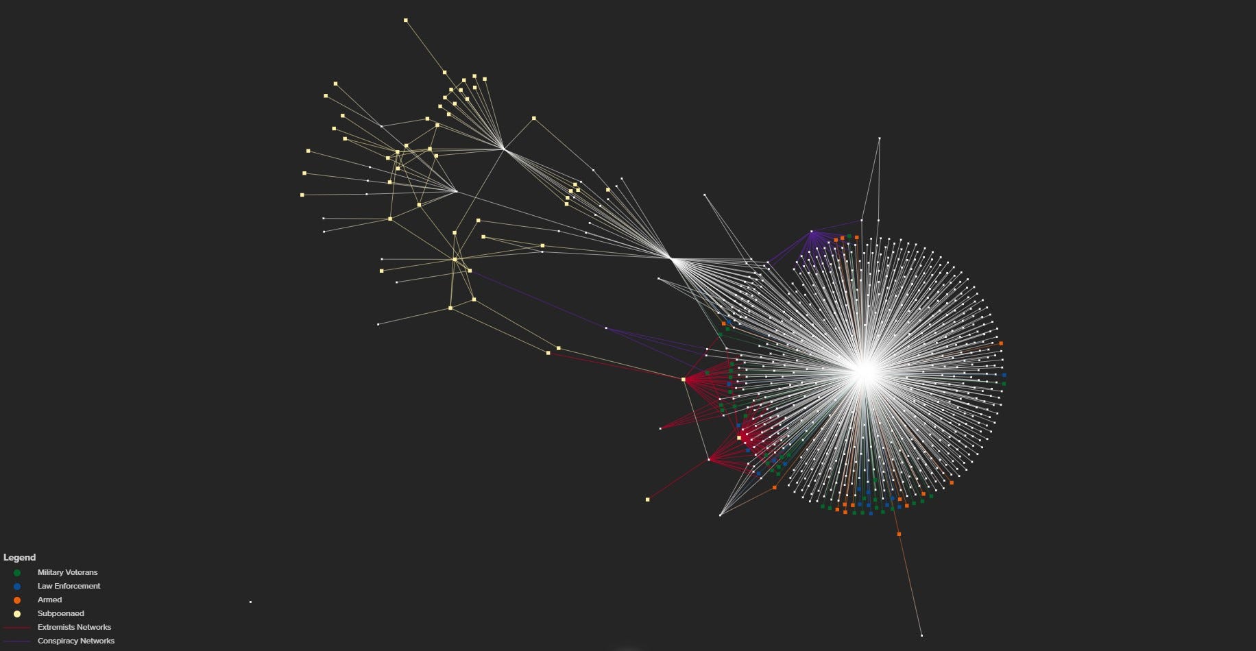 The Capitol Riot Insurrectionists Networks is an interactive visualization tool that maps the networks of the 700 individuals who have been arrested and charged in co…